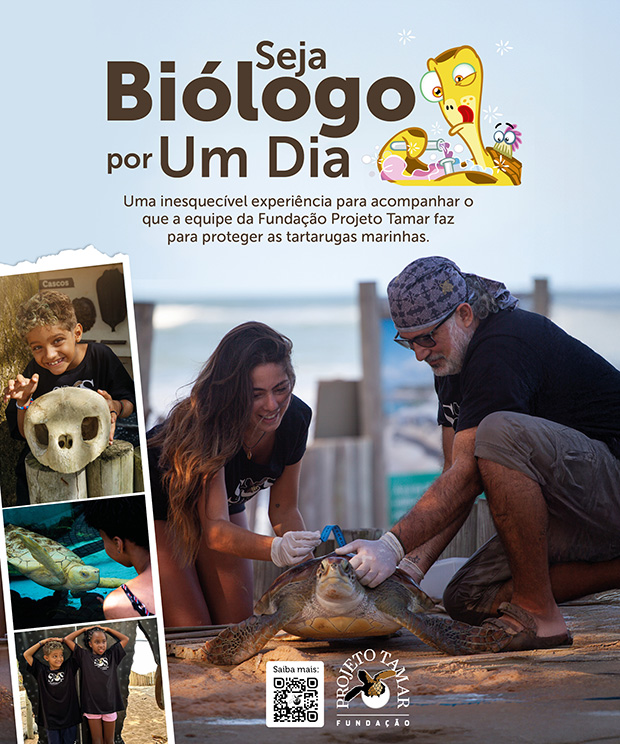 O programa “Biólogo por um Dia”, é direcionado para públicos de diferentes idades onde podem acompanhar, com exclusividade, o trabalho da Fundação Projeto Tamar na conservação das tartarugas marinhas no Brasil.