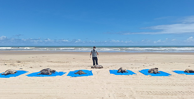 Entre janeiro de 2020 e dezembro de 2025, foram registrados mais de 4.850 encalhes de tartarugas marinhas nas praias do litoral de Sergipe e do extremo norte da Bahia. Desses, cerca de 74% (n = 3.567) corresponderam à espécie Lepidochelys olivacea, resultando em uma média de 800 encalhes por ano, com cerca de 600 indivíduos dessa espécie. A maioria dos animais encontrados é adulta, em idade reprodutiva, o que representa uma perda significativa para a população, uma vez que estas tartarugas estão prontas para a desova. Essa situação requer uma intensificação das ações de manejo e fiscalização.
