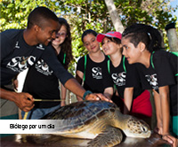 Durante a temporada reprodutiva das tartarugas marinhas, é possível acompanhar o manejo dos ninhos transferidos das áreas de risco, nas praias, para o cercado de incubação. Aqui também se aprende sobre as atividades de proteção e manejo.