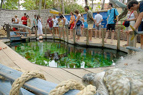 Entre tanques e aquários, são 600 mil litros de água salgada com exemplares da fauna marinha da região e de quatro das cinco espécies de tartarugas marinhas que ocorrem no Brasil, em diferentes estágios do ciclo de vida. Tem multimídia, cinema, vídeo, aquários, tanques, exposição permanente de painéis fotográficos, loja e restaurante. Um espaço cultural recebe eventos com artistas nacionais, internacionais e locais. As informações estão distribuídas por todo o espaço, através de painéis em português e inglês.